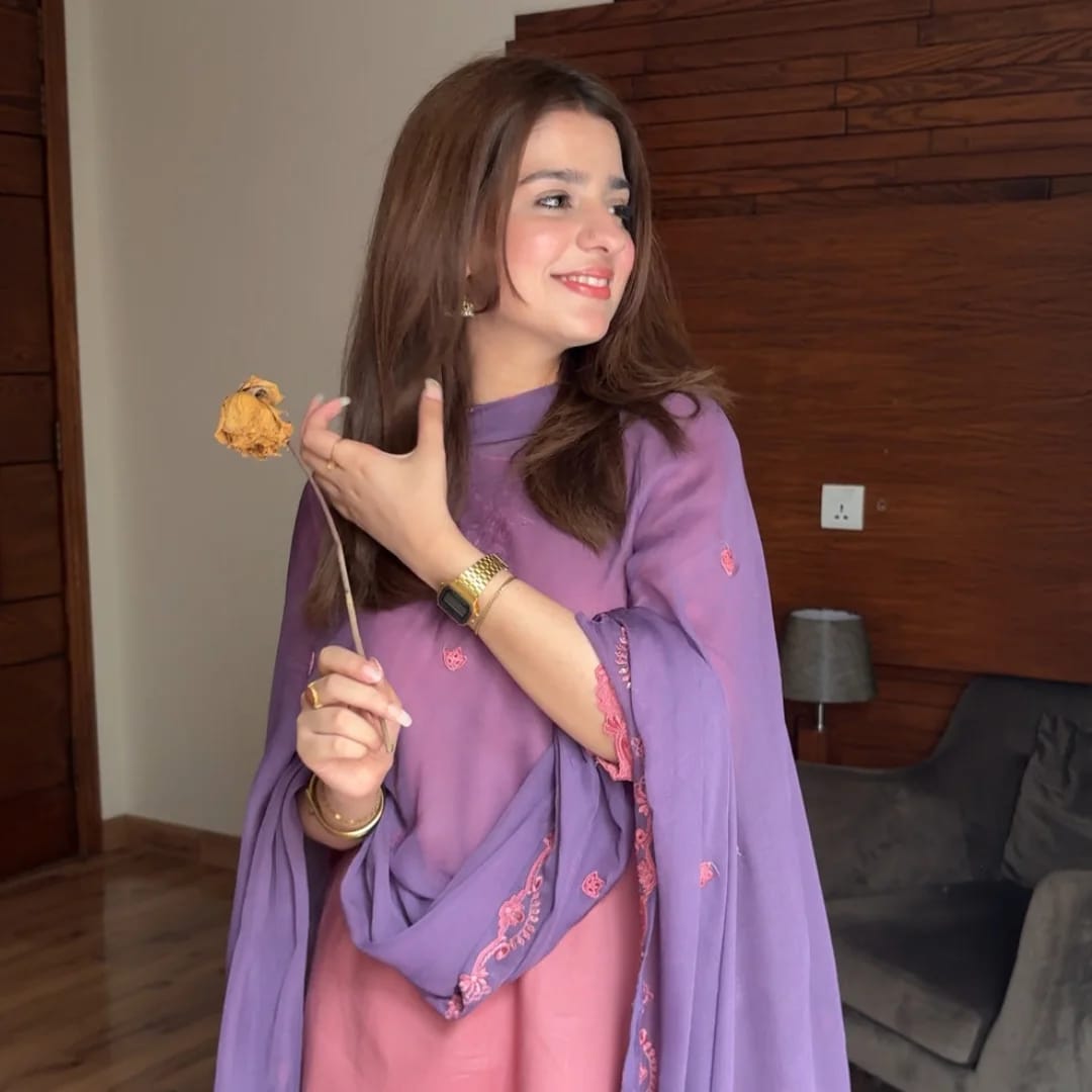 Crafted in a soothing rosy charm shade, this 3-piece embroidered linen suit blends elegance with comfort. Delicate detailing on the neckline, sleeves, and hem adds refined charm. Perfect for both casual gatherings and semi-formal occasions.